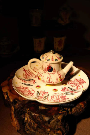 FSHarmony specializes in Taoist cultural porcelain, featuring hand-painted underglaze artwork and dual-safe high-temperature firing. We incorporate incense ash and five-color mineral glazes; some pieces are inlaid with red agate and accented with gold and silver plating. The collection includes classic Chinese-style wares, ritual cups, tea utensils and home decorations, adorned with auspicious patterns such as Taoist talismans, Tai Chi, Bagua and Ruyi clouds. Suitable for cultural ceremonies, tea appreciation and home blessing decoration, each piece is custom hand-painted, symbolizing good luck, peace, health and gentle charm. It perfectly combines oriental Taoist aesthetics with practical ware design.