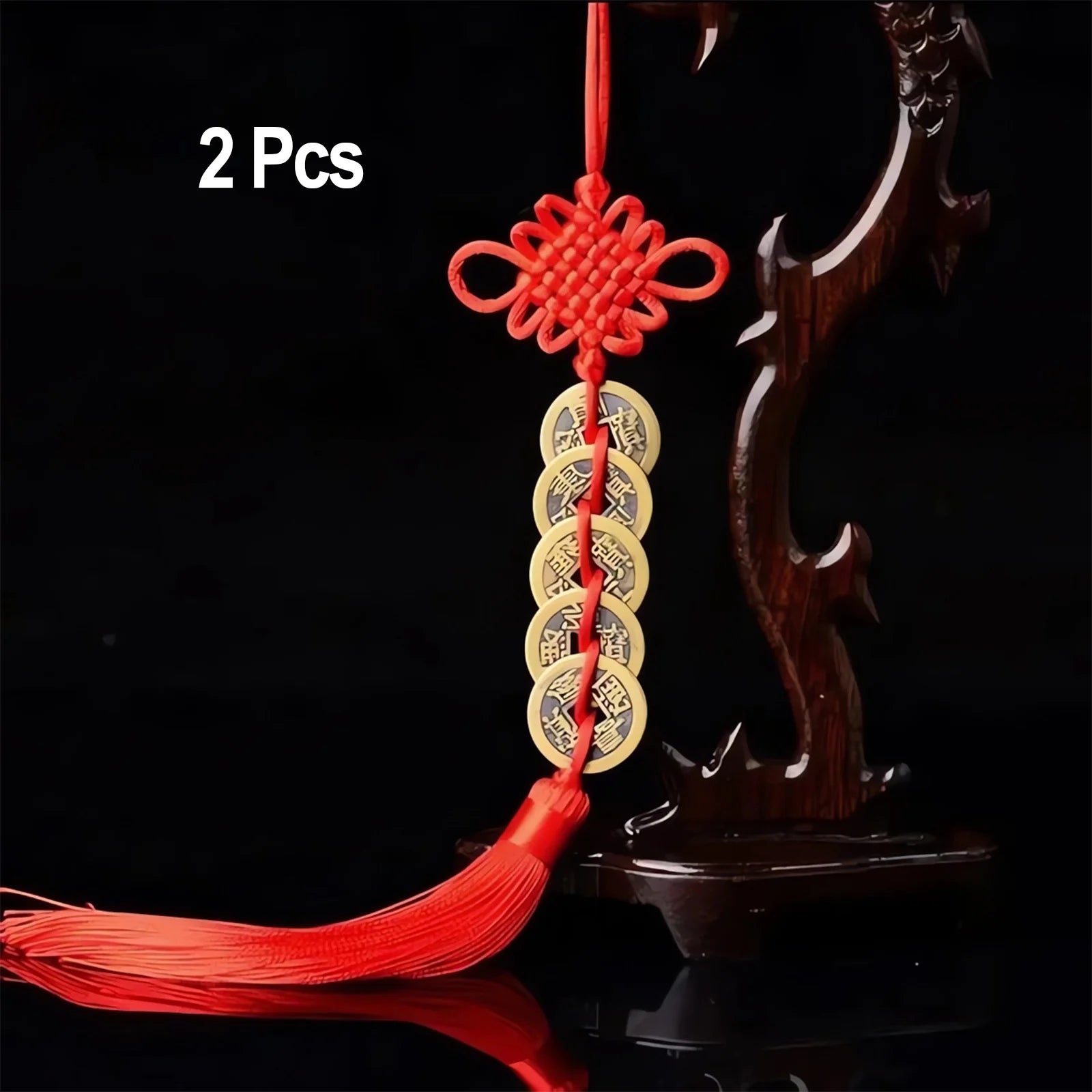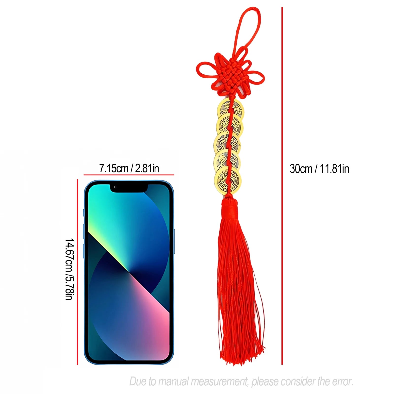 Each set of Five Emperors' Coins consists of five coins, strung together with a Chinese knot made of red rope. It is a symbol of the harmony of yin and yang, and the combination of movement and stillness. In addition, there are often auspicious words on the copper coin, which can bless people.